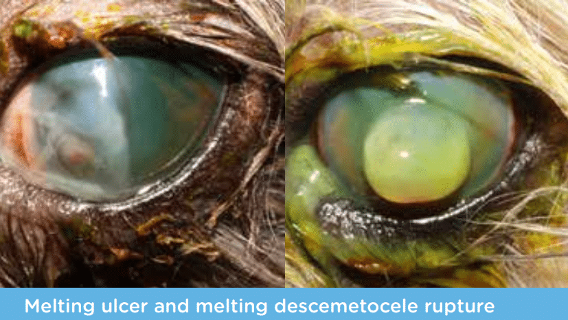If left untreated, ulcers can progress to the point where the eye can rupture. Once the eye has ruptured, this usually results in permanent loss of vision or the eye.