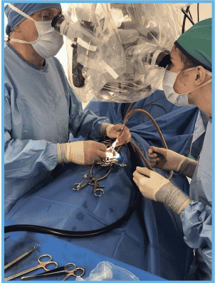 In most cases this is a surgical procedure called a “tie-back”, where the larynx is approached through the side of the neck, and the paralysed cartilage is permanently “tied-back” into place to keep the larynx open.