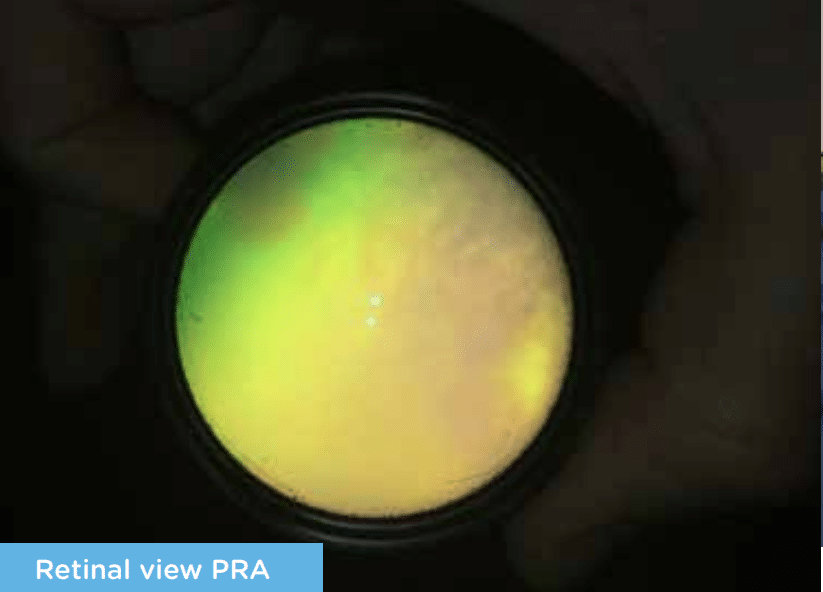 PRA is considered a genetic disease, i.e. the cells in the retina are genetically programmed to self-destruct at a certain point in life.