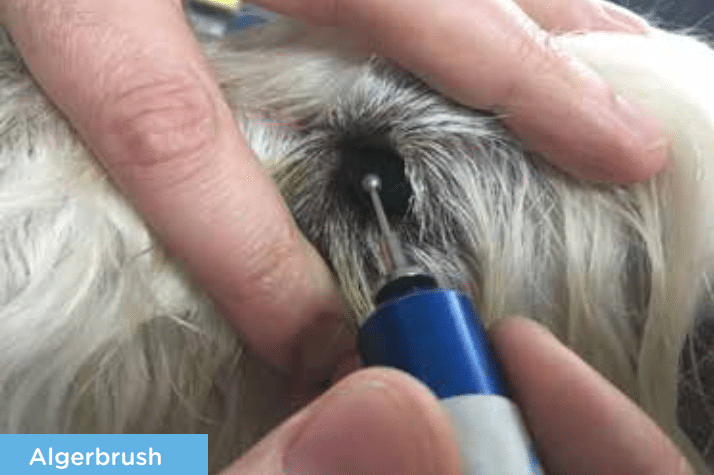 There are several treatment options available each with their advantages and disadvantages. All treatment options involve removing the loose edges of the superficial layer of the cornea and ‘debriding’ (rubbing off) the underlying layers to provide an adequate surface for new superficial cells to attach to. This may involve debriding the cornea with a so-called ‘diamond burr’, or having to perform surgery using microsurgical instruments at high magnification.
